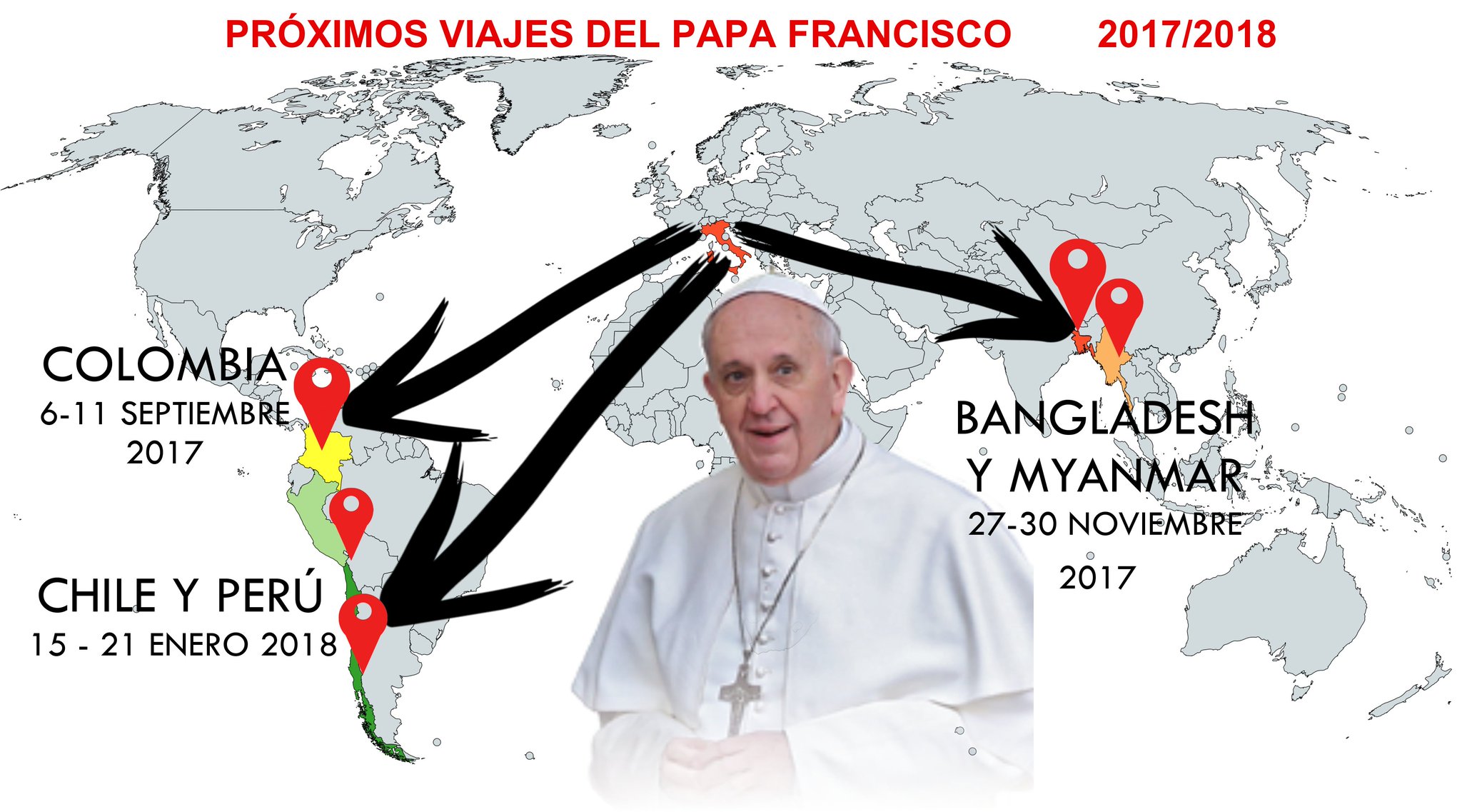 Aunque el Papa no se conforma simplemente con asegurar su cercanía y oración a estas poblaciones orientales, y es por ello que el lunes anunciaba un nuevo Viaje en el mes de noviembre a Bangladesh y Myanmar, será entre los días 27 de noviembre y 2 de diciembre.