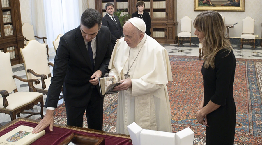 La audiencia privada del Santo Padre con Sánchez se llevó a cabo en la Biblioteca del palacio apostólico del Vaticano a las 9:20 a.m. y duró alrededor de 35 minutos.